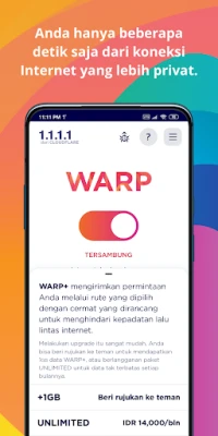 Untuk pengalaman melayari yang tiada tandingan, tingkatkan kecekapan anda dengan WARP+. Teknologi inovatif di sebalik WARP+ sentiasa menguji ribuan laluan Internet setiap saat, mencari dan mengarahkan data anda melalui laluan terpantas yang tersedia. Ini membolehkan anda mengatasi kesesakan trafik Internet, memastikan kelancaran dan responsif yang luar biasa, serupa dengan bagaimana teknologi ini membantu mempercepatkan ribuan laman web secara purata 30% lebih pantas. Sementara 1.1.1.1 dengan WARP tersedia secara percuma, WARP+ membuka dimensi baharu dalam kelajuan dan kecekapan, memastikan anda sentiasa berada di laluan terpantas dalam landskap digital.