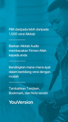 App Alkitab YouVersion menawarkan alat percuma untuk menguatkan iman anda setiap hari. Selami Firman-Nya melalui Alkitab audio, mulakan rancangan Doa, belajar bersama Sahabat, dan terokai lebih 2,000 terjemahan Alkitab. Temui hati Allah dengan mudah dan dalam.