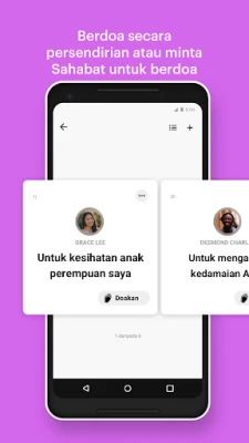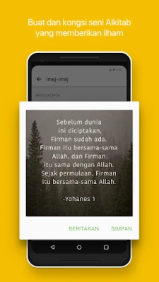 Selami perjalanan iman yang lebih mendalam dengan alat penyesuaian yang inovatif dalam App Alkitab. Peribadikan pengalaman membaca anda dengan sorotan berwarna-warni, penanda buku untuk ayat-ayat kegemaran, dan nota peribadi atau yang boleh dikongsi bersama. Anda juga boleh berkreatif dengan imej ayat Alkitab yang menawan untuk dikongsikan di media sosial. Selain itu, bina tabiat doa yang kukuh menggunakan ciri Kad Doa. Susun niat doa anda dengan mudah, kongsikannya dengan sahabat atau kekalkannya secara peribadi, dan saksikan serta rayakan jawapan doa bersama komuniti Anda. Sinkronisasi awan melalui akaun YouVersion percuma memastikan semua penyesuaian anda tersedia pada setiap peranti yang disokong.
