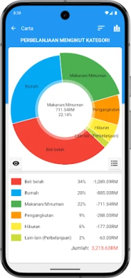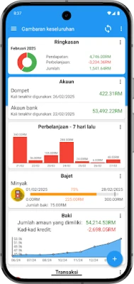 Visualisasikan kesihatan kewangan anda melalui pelbagai carta dinamik yang membandingkan perbelanjaan dan pendapatan, mendedahkan di mana anda boleh berhemat. Kalendar interaktif membolehkan anda melihat pergerakan tunai dan pembayaran yang akan datang dengan mudah. Untuk kawalan bajet yang tiada tandingan, cipta belanjawan tersuai yang melangkaui pelbagai kategori, memberi anda pandangan masa nyata tentang baki wang anda. Aplikasi ini turut menyokong penyegerakan sehingga lima peranti, memastikan data anda sentiasa terkini dan boleh diakses di mana sahaja.