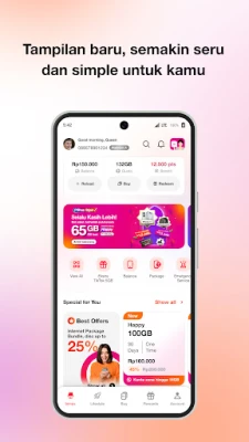 Rasai kemudahan digital yang belum pernah ada sebelum ini bersama bima+, teman setia gaya hidup modern Anda. Dengan bima+, mengelola kebutuhan seluler Anda menjadi lebih mudah dari sekadar yang Anda bayangkan. Periksa penggunaan kuota internet dan informasi terkini mengenai langganan paket aktif Anda secara instan. Memperbaharui atau mendapatkan paket data baru juga sangat sederhana; pilih dari beragam pilihan menarik yang disesuaikan untuk memenuhi keperluan Anda. Ditambah lagi, bima+ menawarkan pelbagai kaedah pembayaran canggih, memastikan setiap transaksi berjalan lancar dan sesuai dengan gaya hidup zaman kini.