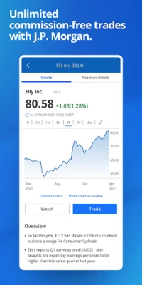 Rancang masa depan anda dan kembangkan aset dengan ciri pelaburan yang ditawarkan oleh Chase. Manfaatkan komisyen $0 untuk dagangan dalam talian bagi ekuiti, ETF, dan opsyen. Gunakan J.P. Morgan Wealth Plan untuk menetapkan dan menjejaki matlamat kewangan jangka panjang anda, dengan pilihan untuk menjadualkan pertemuan bersama penasihat profesional. Jangan ketinggalan pelbagai ganjaran, tawaran dan promosi eksklusif; jejak dan tebus ganjaran anda, atau dapatkan pulangan penyata kredit dengan Chase Offers menggunakan kad debit/kredit yang layak. Hubungi Chase dengan mudah—jadualkan pertemuan dengan jurubank, cari cawangan dan ATM Chase terdekat, atau berbual dengan wakil kami 24/7 untuk bantuan segera.