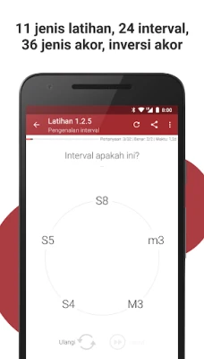 Aplikasi latihan telinga terbaik untuk pemuzik. Tingkatkan kemahiran aural dan pengetahuan teori muzik anda secara menyeluruh. Kuasai interval, kord, dan skala, memperbaiki improvisasi, komposisi, serta prestasi dalam band anda. Pembelajaran menyeronokkan, direka seperti permainan video.