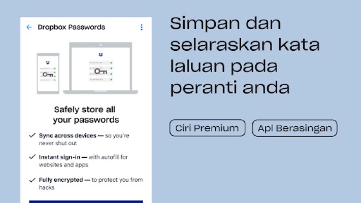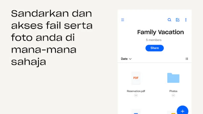 Dropbox mengurus, melindungi dan memastikan fail anda mudah diakses. Kongsi fail besar atau kecil dengan pautan ringkas. Simpan semua fail penting anda di satu tempat, sandarkan peranti, imbas dan susun dengan selamat.