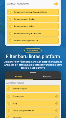 Alami tahap interaksi yang baharu dengan ciri-ciri utama Flightradar24. Selami pandangan kokpit 3D untuk melihat dunia dari perspektif juruterbang, atau ketik pada mana-mana pesawat untuk mendedahkan butiran penerbangan yang menyeluruh seperti laluan, anggaran masa ketibaan, kelajuan, altitud, dan foto resolusi tinggi. Aplikasi ini juga membolehkan anda meneroka data sejarah penerbangan, melihat maklumat papan ketibaan dan keberangkatan lapangan terbang, status kelewatan, dan keadaan cuaca. Dengan pilihan penapisan mengikut syarikat penerbangan, jenis pesawat, atau kelajuan, serta keserasian Wear OS untuk capaian mudah, anda mempunyai kawalan penuh ke atas maklumat udara.