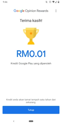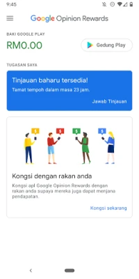 Jawab tinjauan ringkas yang menyeronokkan dengan Google Opinion Rewards dan mula peroleh kredit Google Play. Manfaatkan setiap pendapat anda untuk mendapatkan ganjaran digital. Aplikasi ini dicipta oleh pasukan Tinjauan Google.