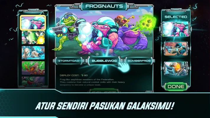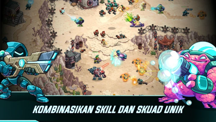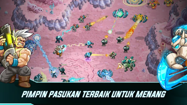 Di medan perang kosmik, kuasa tentera anda terletak pada gabungan unit yang mahir dan kepimpinan hero yang berkarisma. Gabungkan pelbagai jenis tentera daripada 10 kumpulan unit unik – dari renjer pantas hingga penembak tepat jitu, mecha pertempuran berat, pelancar peluru berpandu, malah pahlawan klan asing yang menakutkan – membentuk legiun yang tidak dapat dihalang. Setiap daripada sembilan hero legenda dilengkapi dengan kebolehan istimewa yang boleh mengubah arus pertempuran, sama ada meningkatkan moral, daya tembak, ketahanan, atau mengesan musuh yang mengintai. Latih mereka, manfaatkan kekuatan mereka, dan pimpin mereka untuk menjaga kedamaian intergalaksi daripada makhluk-makhluk ganas dan musuh luar biasa yang cuba mengganggu gugat ketenteraman alam.