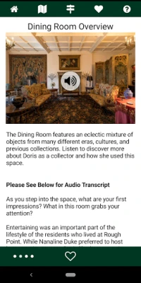 Di Rough Point, kediaman ikonik Doris Duke, anda akan dibawa mengembara jauh ke dalam bilik-bilik yang megah, koleksi yang menakjubkan, dan kehidupan individu yang pernah menghuni ruang ini. Saksikan rakaman video eksklusif di sebalik tabir yang mendedahkan penjagaan teliti warisan seni dan sejarah, melangkah secara maya ke kawasan yang biasanya tidak dapat diakses semasa lawatan fizikal, dan temui artifak-artifak penting dengan penerangan istimewa.