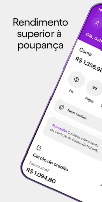 Dengan Nubank, pelbagai peluang kewangan kini berada di hujung jari anda. Nikmati NuConta, akaun digital percuma, dan miliki kad kredit antarabangsa tanpa yuran tahunan yang diterima di mana-mana sahaja di dunia. Rasai kebebasan kewangan dengan had kredit yang diaktifkan serta-merta apabila anda melunaskan bil, dan saksikan bagaimana wang simpanan anda boleh berpotensi meningkatkan had anda. Tingkatkan nilai simpanan anda dengan pulangan yang melebihi akaun simpanan tradisional, sambil menerokai pelbagai pilihan pelaburan. Manfaatkan ciri 'Caixinhas' kami, direka khusus untuk membantu anda menyimpan wang dan meraih keuntungan.