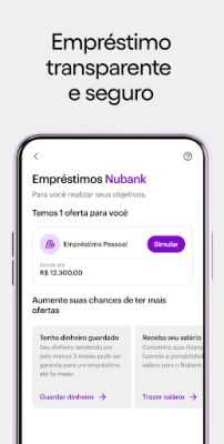 Nubank, perintis teknologi kewangan terkemuka di seluruh Amerika Latin, mengubah cara anda menguruskan wang dengan pengalaman yang telus dan tanpa birokrasi. Kami percaya bahawa kehidupan kewangan anda haruslah mudah, ringkas, dan bebas daripada kerumitan. Aplikasi Nubank direka untuk mencerminkan prinsip ini, memberikan anda kawalan penuh ke atas setiap aspek kewangan anda, tanpa sebarang syarat tersembunyi, muslihat, atau caj yang tidak dapat dijelaskan.