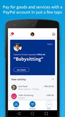 Urus pembayaran anda dengan mudah. Bayar pengguna PayPal lain untuk barangan atau perkhidmatan, dari pembayaran pengasuh hingga pendandan rambut. Pantau aktiviti akaun anda dengan pengalaman aplikasi mudah alih yang dipertingkatkan ini.