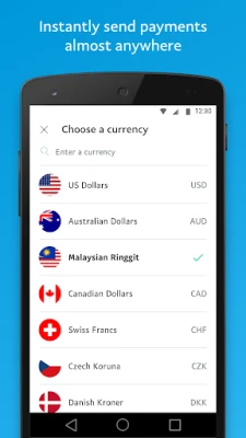 Jangkau dunia dengan hanya beberapa ketukan. Aplikasi mudah alih PayPal membolehkan anda menghantar dana merentasi sempadan antarabangsa, menyokong pelbagai mata wang utama. Tidak kira di mana sahaja orang tersayang anda berada atau transaksi perniagaan anda perlu dilakukan, PayPal memudahkan proses pemindahan wang global agar ia lancar dan efisien, menghubungkan anda dengan sesiapa sahaja, di mana sahaja.