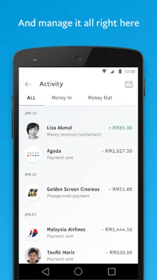Kawal selia kewangan anda dengan mudah dan jelas. Dompet digital PayPal anda adalah pusat sehenti untuk semua urus niaga anda. Pantau setiap pembayaran yang anda buat dan setiap dana yang anda terima dengan paparan terperinci, memberikan anda gambaran menyeluruh tentang aliran wang anda. Pengurusan kewangan peribadi anda kini di hujung jari, menjadikan penjejakan transaksi lebih teratur dan telus.