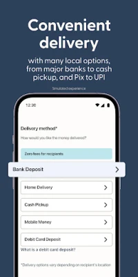Remitly memudahkan anda menghantar dana ke lebih 170 negara di seluruh dunia. Fleksibiliti adalah kunci, dengan pelbagai pilihan pengiriman termasuk pindahan terus ke akaun bank, pengambilan tunai di lokasi yang dipercayai, atau terus ke dompet digital yang popular seperti M-Pesa, GCash, dan banyak lagi. Jaringan luas Remitly bekerjasama dengan bank dan penyedia perkhidmatan kewangan yang bereputasi, memastikan wang anda sampai ke destinasi dengan selamat, tidak kira di mana penerima berada.