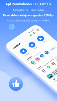 SHAREit: Pindah & Kongsi Fail ialah aplikasi pemindahan fail pantas dan selamat. Kongsi aplikasi, video, gambar, muzik, dokumen dengan mudah antara peranti atau ke PC. Lebih 2 bilion pengguna mempercayainya.