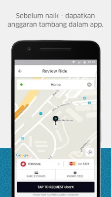 Proses mendapatkan pengangkutan dengan Uber direka untuk kesederhanaan yang maksimum. Hanya nyatakan destinasi anda dalam aplikasi, dan sistem pintar kami akan secara automatik mengenal pasti lokasi pengambilan anda. Sebelum perjalanan bermula, anda akan menerima maklumat lengkap pemandu, termasuk gambar dan butiran kenderaan, serta kemampuan untuk menjejak pergerakan mereka secara langsung pada peta. Pembayaran juga dipermudah melalui pelbagai pilihan termasuk kad kredit, tunai di lokasi terpilih, Android Pay, dan PayPal. Selepas perjalanan, sistem penilaian membolehkan anda berkongsi maklum balas untuk membantu kami sentiasa menambah baik perkhidmatan, dan resit digital akan dihantar terus ke e-mel anda. Ini memastikan ketelusan dan pengalaman yang diperibadikan pada setiap masa.