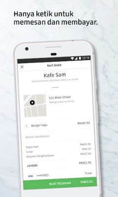 Menemukan hidangan impian anda kini lebih mudah. Semak imbas menu daripada senarai restoran tempatan yang meluas dan pilihan makanan segera yang digemari, atau cari terus hidangan atau tempat makan idaman anda. Setelah keputusan dibuat, anda akan diberikan gambaran penuh mengenai pesanan anda: alamat penghantaran, jangkaan masa tiba, serta pecahan harga yang jelas, termasuk cukai dan caj penghantaran. Proses pembayaran pula dipermudah, sama ada menggunakan akaun Uber anda atau menambah kad kredit baharu dengan selamat.
