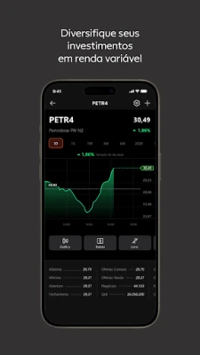 **Warren Home Broker** dilengkapi sepenuhnya dengan ciri-ciri penting untuk setiap strategi pelaburan. Nikmati analisis pasaran yang mendalam, grafik intraday yang jelas untuk memantau pergerakan harga, dan keupayaan untuk menambah pelbagai indikator teknikal. Uruskan pesanan dan posisi anda dengan lancar, akses laporan portfolio terperinci, boleta, serta pantau grid sebut harga dan buku tawaran masa nyata, semuanya dari hujung jari anda. Setiap fungsi direka untuk memberikan anda kawalan penuh dan pandangan menyeluruh ke atas aktiviti perdagangan anda.