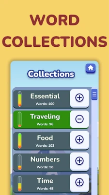 Selain itu, Warren Words dilengkapi dengan koleksi perkataan khusus yang dikategorikan mengikut tema seperti makanan, perjalanan, angka, masa, dan banyak lagi, membolehkan anda memfokuskan pembelajaran pada bidang yang paling relevan untuk anda. Pembelajaran adaptif memastikan aplikasi ini sentiasa menyesuaikan diri secara dinamik dengan kemajuan anda, mengekalkan tahap kesukaran yang optimum untuk pembelajaran berterusan. Anda juga boleh memantau pertumbuhan perbendaharaan kata dan peningkatan keseluruhan anda melalui penjejakan kemajuan yang intuitif.
